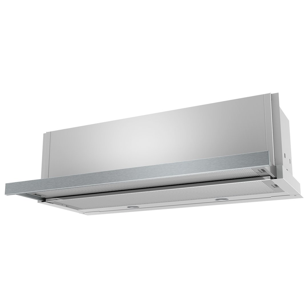 A slideout rangehood sits concealed beneath an overhead cabinet when not in use. When you're cooking, you pull the panel out - it extends forward over the cooktop, improving the capture area and increasing airflow. The retractable design takes up minimal visual space and doesn't require a permanent chimney body to be visible in the kitchen. It's a practical choice for kitchens where cabinetry runs directly above the cooktop but a fixed or visible rangehood would interrupt the design. Brands like Miele, Westinghouse and Bosch produce quality slideout models across a range of extraction capacities.
