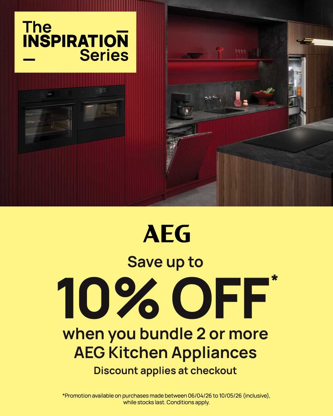 10 Year Warranty* + 10% off^ selected AEG Kitchen Appliances - Prices as Marked