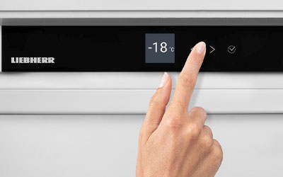 Fingertip control: the touch display enables easy and intuitive operation of your Liebherr. All functions are clearly arranged on the display. By gently tapping a finger, for example, you can easily select the functions or check the current temperature of your refrigerator.