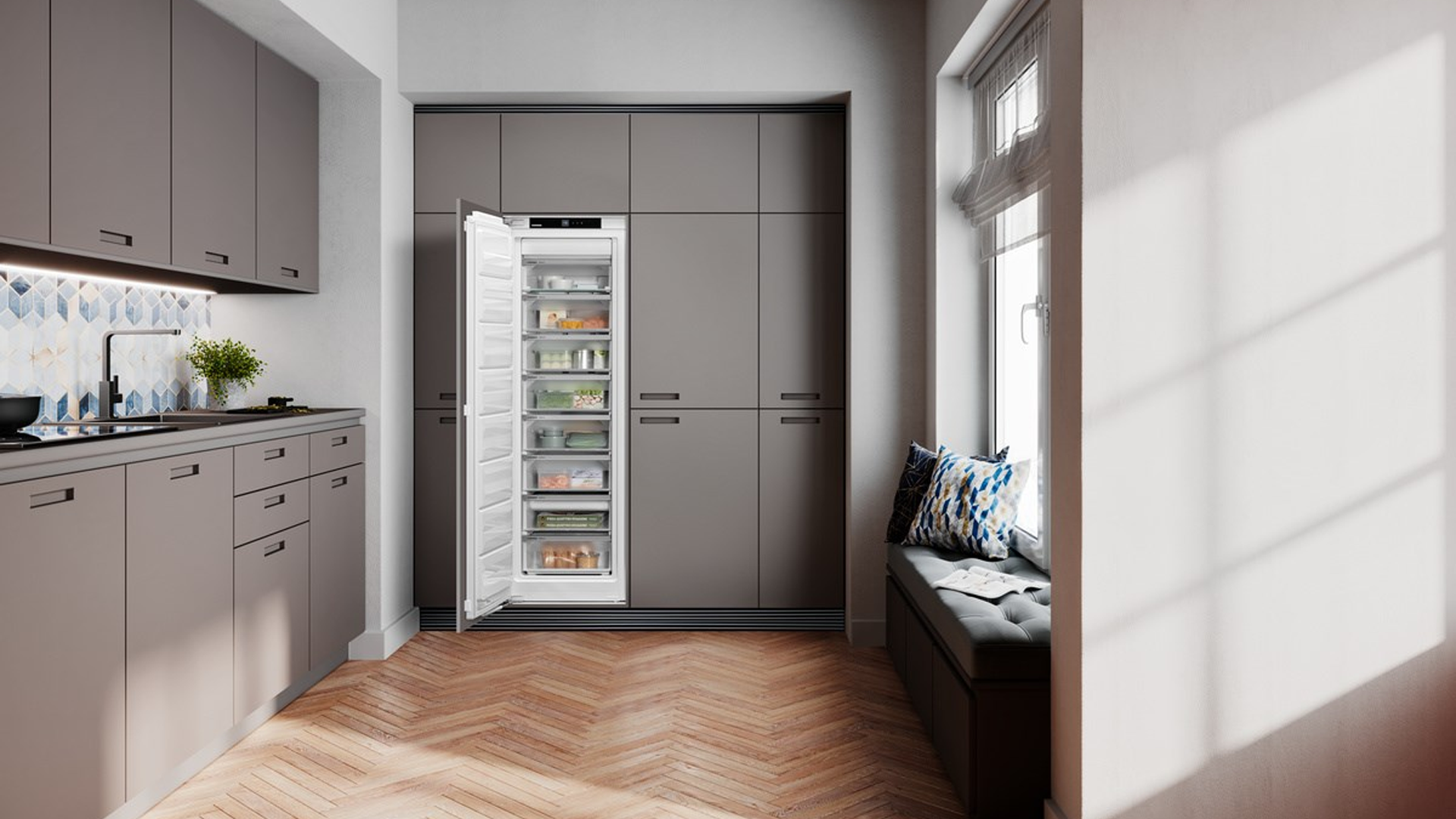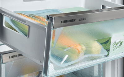 Liebherr’s SIFNh 5128 features NoFrost technology, FrostSafe extra-tall removable drawers and the SuperFrost function which saves time and energy to rapidly freeze fresh food. Integrated drawer slides provide convenient access to your food at all times. The pull-out stop prevents drawers from falling out when opened. VarioSpace means individual drawers can be removed and the horizontal glass dividers below them, to create extra large storage space.