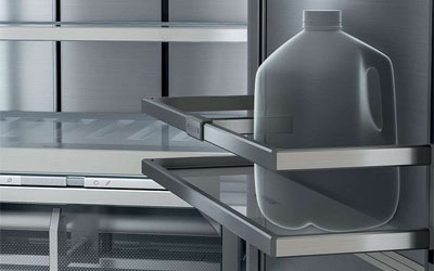 Monolith’s durable and elegant door shelves provide more space and convenience. Store gallon jugs of tea, juice and milk on the door, freeing up the refrigerator’s interior shelves for everything from party platters to fresh salad bowls.