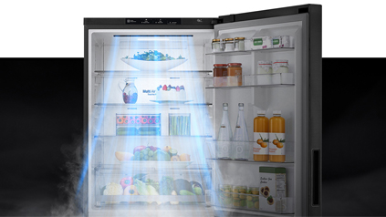 - Features a multi-air flow system that evenly distributes cool air throughout the fridge for freshness.