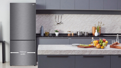 With a 700mm width that easily fits most kitchens, enjoy the convenience and storage of this modern and very stylish bottom mount refrigerator.