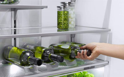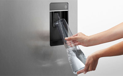 The slimline dispenser makes it easy to fill almost any sized jug or vessel with cool filtered water and doesn’t take up any storage space in your refrigerator. You'll need to purchase our stainless steel door panel in order to use the water dispenser. Fresh ice is always available for you in a dedicated freezer bin. Simply turn it off to free up freezer space or during busy times, you can boost ice production by up to 30%.