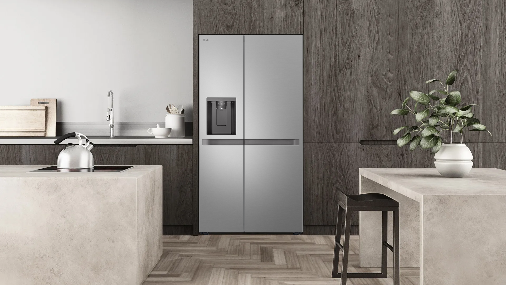 With 641 litres split across a full-height fridge and freezer, there's generous space for everything from weekly groceries to bulk buys. The ice and water dispenser means cold drinks on demand without cracking a tray, and Express Freeze gets food down to temperature quickly when you need it most. Behind the scenes, LG's LINEAR Cooling technology keeps temperatures steady and consistent, so your food stays fresher for longer and you waste less. A door alarm gives you a quiet nudge if something's been left ajar — a small touch that makes a real difference day to day.