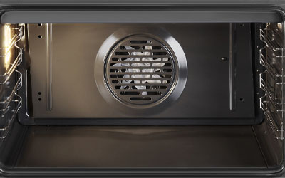 Smeg’s Ever Clean enamel’s tough surface has a glassy finish, so a simple spray of water and detergent around the cavity in conjunction with the Vapour Clean option will generate heat and steam to soften any grease for a wipeclean result.