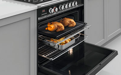 With an extra large 140L capacity, this range has plenty of space for cooking multiple dishes at the same time. Every detail has been carefully crafted, from the solid balanced door to the durable cooktop trivets and large capacity oven.