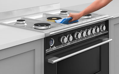 Your cooktop simply needs a quick wipe to keep it looking good as new, as the gas cooktop is made from a single piece of stainless steel that contains spills. The oven door, its inner pane of glass and runners can also be removed for easy cleaning.