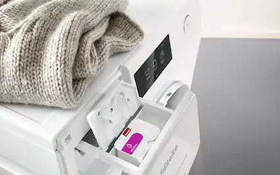 Miele’s single-use capsules are a solution for special types of laundry. Made from 100 % recycled plastic, they go into the fabric conditioner compartment. The content of a capsule is perfect for a single wash cycle – there is no risk of adding too much or too little detergent. There are 6 special-purpose detergents to choose from, plus 3 fabric conditioners, the ImpraProtect proofing agent, Booster for stubborn soiling and CottonRepair.