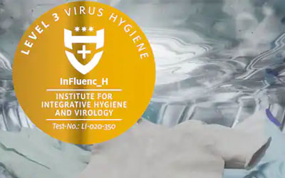 Worry-free laundry care: thanks to the TwinDos® automatic dispensing with UltraPhase 1 and UltraPhase 2 in combination with the excellent cleaning efficiency of PowerWash, over 99.9 % of all possible viruses are reliably removed. This has been confirmed in a test by Albstadt-Sigmaringen University. The “Cottons hygiene 60 °C” programme with the “AllergoWash” extra option is effective against enveloped coronaviruses and flu viruses as well as non-enveloped viruses.1