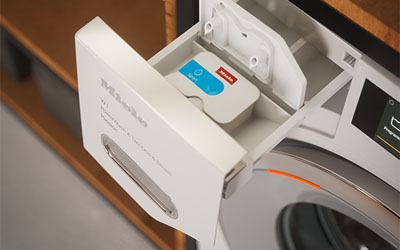 Miele’s single-use capsules are a solution for special types of laundry. Made from 100 % recycled plastic, they go into the fabric softener compartment. The content of a capsule is perfect for a single wash cycle – there is no risk of adding too much or too little detergent. There are 6 special-purpose detergents to choose from, plus 3 fabric softeners, the ImpraProtect proofing agent, Booster for stubborn soiling and CottonRepair.