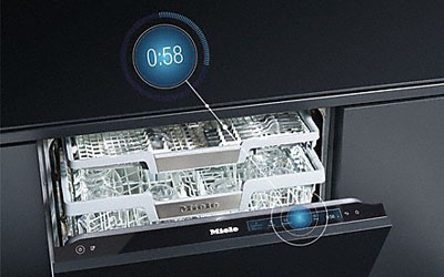 All Miele dishwashers can be connected to a hot water connection at a temperature of up to 60 °C. In the Gentle programme, this reduces electricity consumption by up to 50 % and running times by up to 10 %. In the ECO programme, the energy consumption of the dishwasher is reduced to as little as 0.45 kWh.