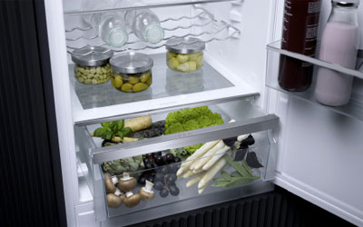 The spacious drawers in the fridge offer space for a lot of fresh food. An optimum level of moisture is kept within the drawer. This results in fruit and vegetables staying fresh for up to 2 times longer. Selected models have an ExtraCool drawer in which the temperature is lower than in the rest of the refrigerator, making it the ideal place to store meat, fish and dairy products.