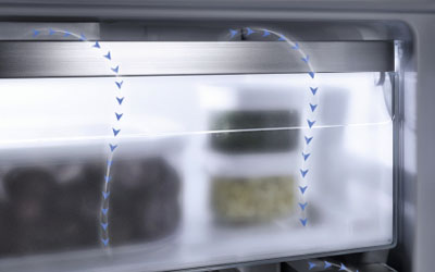 With the NoFrost system you never have to defrost your Miele refrigeration appliance again. Circulation cooling ensures that cold, dry air is evenly distributed in the interior, preventing ice formation. This means no ice deposits on your frozen food, and allows drawers to be opened and closed easily without layers of ice interfering with them. NoFrost offers maximum convenience for freezing food and saves the hassle of defrosting – forever.