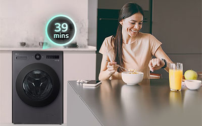 With water jets operating during the wash and rinse, this machine can wash a 3kg load of lightly soiled laundry in only 39 minutes.2