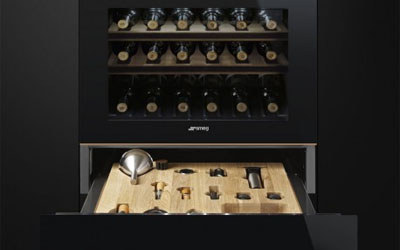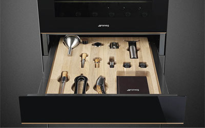 The Smeg 15cm Linea Sommelier Drawer in Midnight Black is perfect for wine enthusiasts who appreciate a blend of elegant design and practical functionality, making wine preparation and enjoyment a seamless part of their kitchen experience.