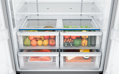 Our FreshSealTM crispers are sealed and come with a humidity slide that you control. The seals assist in preventing moisture loss whilst the humidity slide assists in creating the right environment for keeping food fresher for longer.