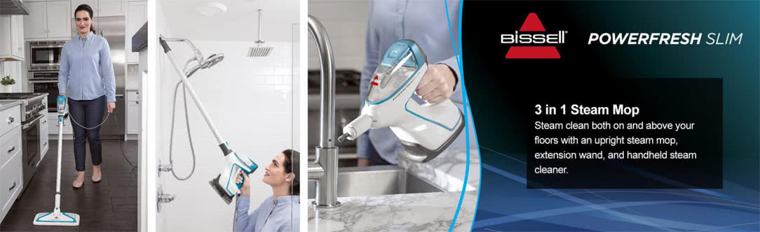 Steam clean anywhere with three machines in one! The BISSELL PowerFresh™ Slim Steam Mop provides a superior clean both on and above your floors, converting from an upright steam mop to an extended reach surface cleaner to a portable handheld steam cleaner. Sanitise your floors naturally using only water and no harsh chemicals. Eliminates 99.9% of germs and bacteria1 when using the microfiber pads. Safe to use on sealed hard floors such as hardwood, ceramic, linoleum, granite, and marble.