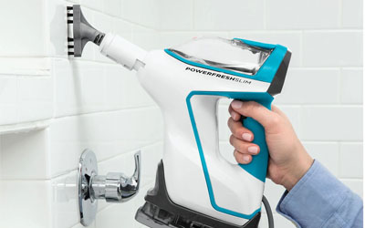 An easy release portable steam cleaner for a superior clean above floors. The handheld steam cleaner allows you to clean multiple areas in your home such as kitchen and bathroom sinks, countertops, stovetops, microwaves, upholstery, pet and children’s toys, and more Includes a wall mount for convenient storage once cleaning is complete. The included Grout Tool can be used to clean dirt and grime for grout that looks like new.