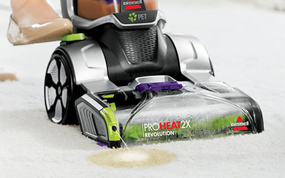 The BISSELL® ProHeat 2X® Revolution® Pet carpet washer handles tough pet and household messes thanks to the exclusive pet clean-up system. The system includes CleanShot® pre-treater to remove spots and stains from your carpet and rugs. With the BISSELL® ProHeat 2X® Revolution Pet, you have everything you need to take on tough messes on your carpets, rugs and upholstery.