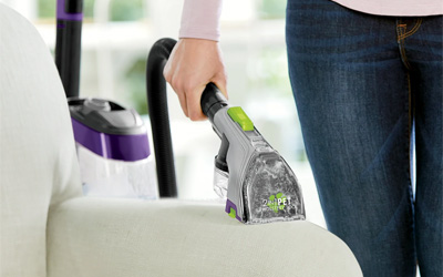 Innovative 2-in-1 Pet Tool removes pet hair, stains, and odors all with one tool. In dry mode vacuum pet hair and dry debris from your upholstery, capturing the mess in its own dry tank for easy disposal. Switch to wet mode and you can remove spots and stains.